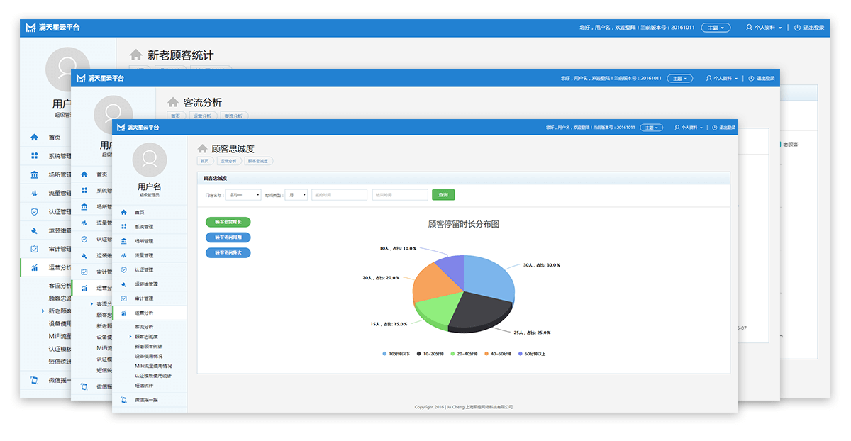 通过处理AP上报的WiFi探测数据,得出周边客流量,进店客流量,进店率,平均停留时间等